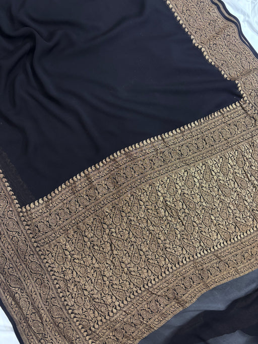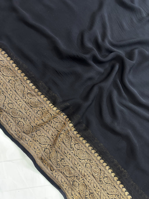 Discover the ethereal beauty of our Pure Khaddi Kadhwa Banarasi Chiffon Georgette Saree. Each piece is a masterpiece of traditional Banarasi craft...