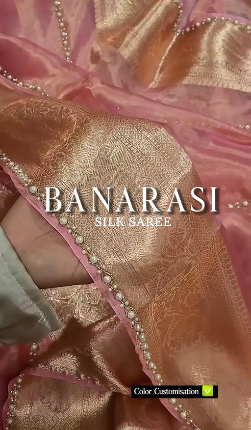 View full detailsStep into the world of timeless elegance with our Pure Banarasi Tissue Handloom Saree adorned with delicate Reshmi Zari work. This exquisite saree ...