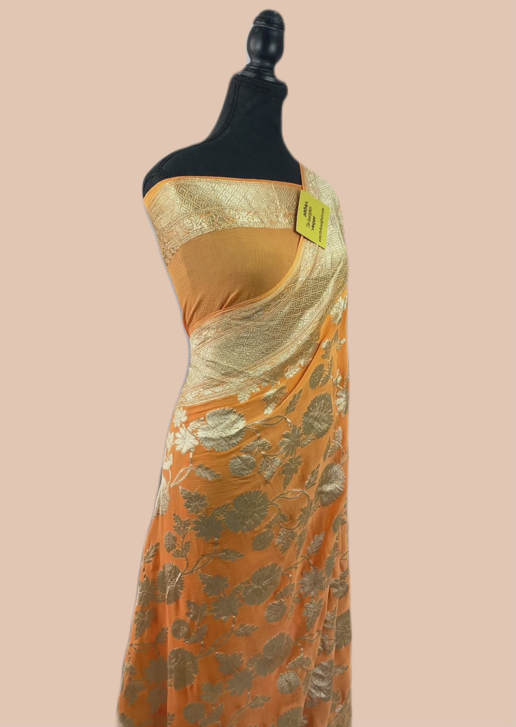Orange Khaddi Georgette Banarasi Saree - Water Zari