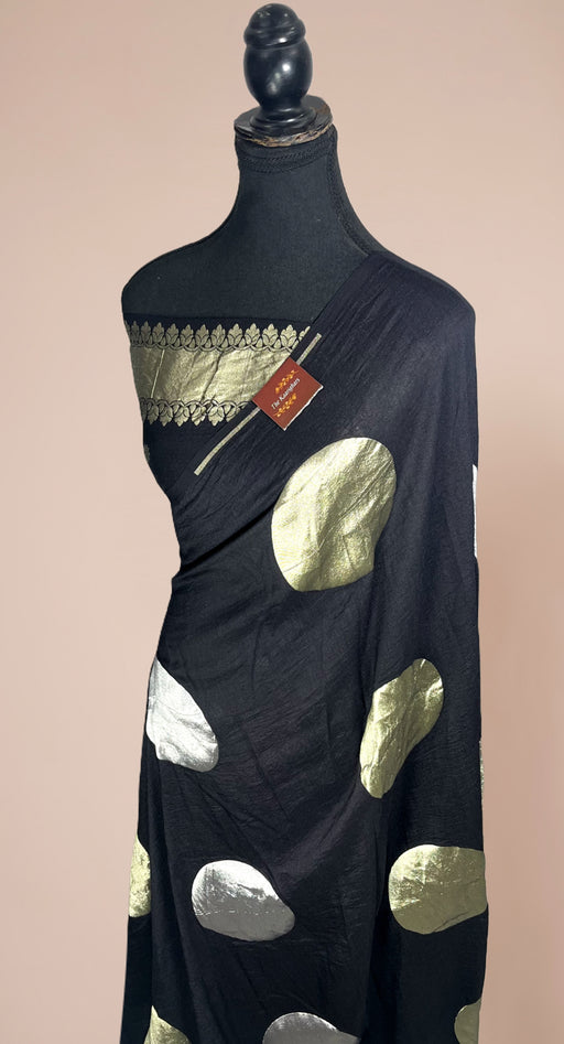 Black Pure Moonga Banarasi Handloom Saree - Designer Saree