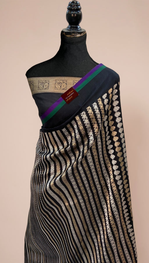 Elevate your wardrobe with the timeless beauty of our Pure Katan Banarasi Handloom Saree, adorned with the exqu...