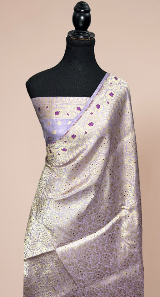 View full detailsEmbrace the epitome of elegance with our Pure Katan Silk Banarasi Handloom Saree, adorned with the intricate Kadhua Jaal work. This saree is a test...