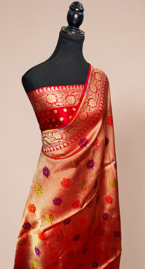 Redefine Opulence with Pure Katan Banarasi Handloom Saree - Hand Zardozi Immerse yourself in the splendor of tr...
