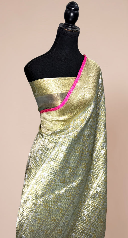 View full detailsA timeless masterpiece that beautifully captures the essence of heritage and elegance, this Tissue Banarasi Handloom Saree is an exquisite fusion o...